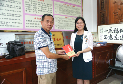 李锦云主席向小留村赠送广药故事等书籍作纪念
