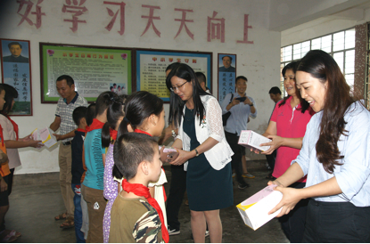 向小留小学的学生发放礼品