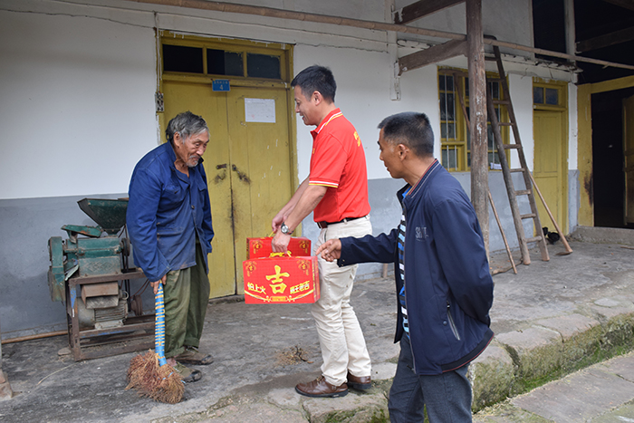 乐总一行在沿河村委会与当地村干部就沿河村的扶贫建设工作进行座谈。村干部表示:通过企业的捐赠帮扶,现11户贫困户家家硬化户路,通到家门口,孩子上学及长期患病家庭经济开支得到了一定程度的缓和。说到王老吉当地人都竖起大拇指,连连称赞,非常感谢王老吉公司对沿河村的牵挂及帮助。乐总表示:希望这些关怀能给大家带来战胜困难的勇气和力量。帮助他人、服务社会,既是“助人”,亦是“自助”,既是“乐人”,同是“乐已”。