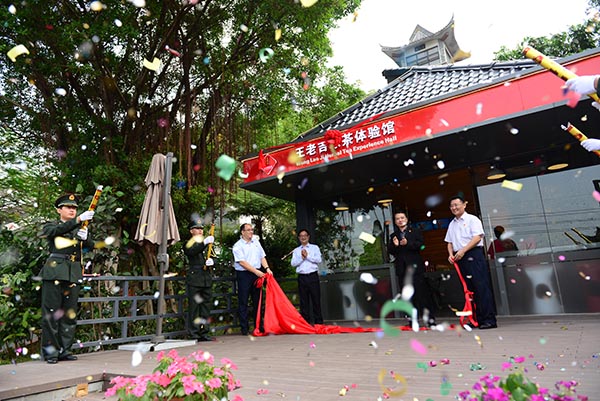 随后,在现场来宾及园区游人的见证下,相关出席领导拉开了覆盖在体验馆“招牌”上的红色帷幕,宣告王老吉凉茶体验馆正式对外迎客。