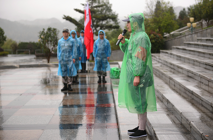 11月16日上午,伴着绵绵细雨现场教学环节也随即展开。整个环节以模拟红军当年的情景进行,全体党员身穿整齐的“红军服”,被划分为多个纵队,由公司总经理翁少全担任“军长”,党委书记巫辉南担任“政治委员”。首先进行的是授旗仪式,“军长”翁少全同志回顾了王老吉大健康公司创业的艰辛历程并号召全体“战士”以用“红军不怕远征难”的心态迎接挑战,不畏风雨,英勇地完成今日的现场教学任务。紧接着,各纵队长在激昂的军乐声中接过了“军长”的授旗。
