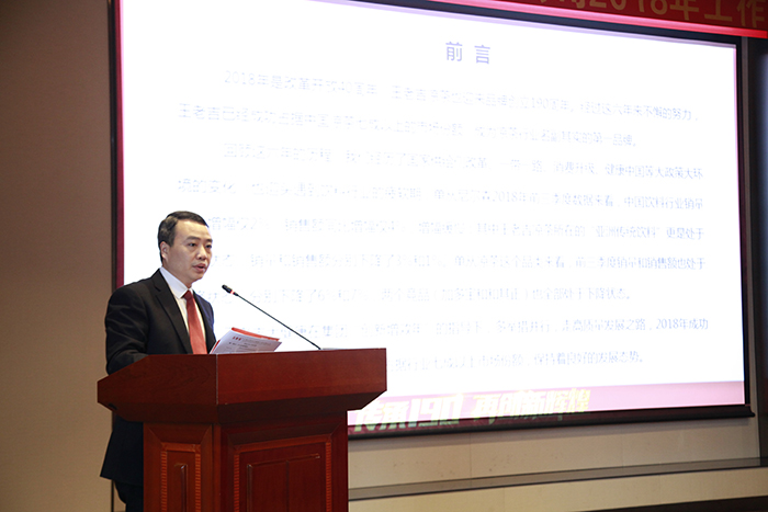 为了下一个190年,真抓实干续辉煌!会上,集团领导高度肯定了王老吉大健康公司2018年的工作成绩,为王老吉大健康提前完成集团下达的年度目标表示赞扬!围绕集团“1136”战略,集团领导详细分析了王老吉大健康公司未来需密切关注的“人才、创新、新增长点、风险控制、管理效率”等五大问题,寄语王老吉大健康公司要做好1136战略的落地工作,不拘一格引进各类人才,创新营销推动王老吉永葆19岁,立足于“新消费、新产业、新市场”打造新的增长点,发挥“敢想、敢闯、敢干、敢为”的四敢精神,把王老吉打造成为全球饮料NO.1。