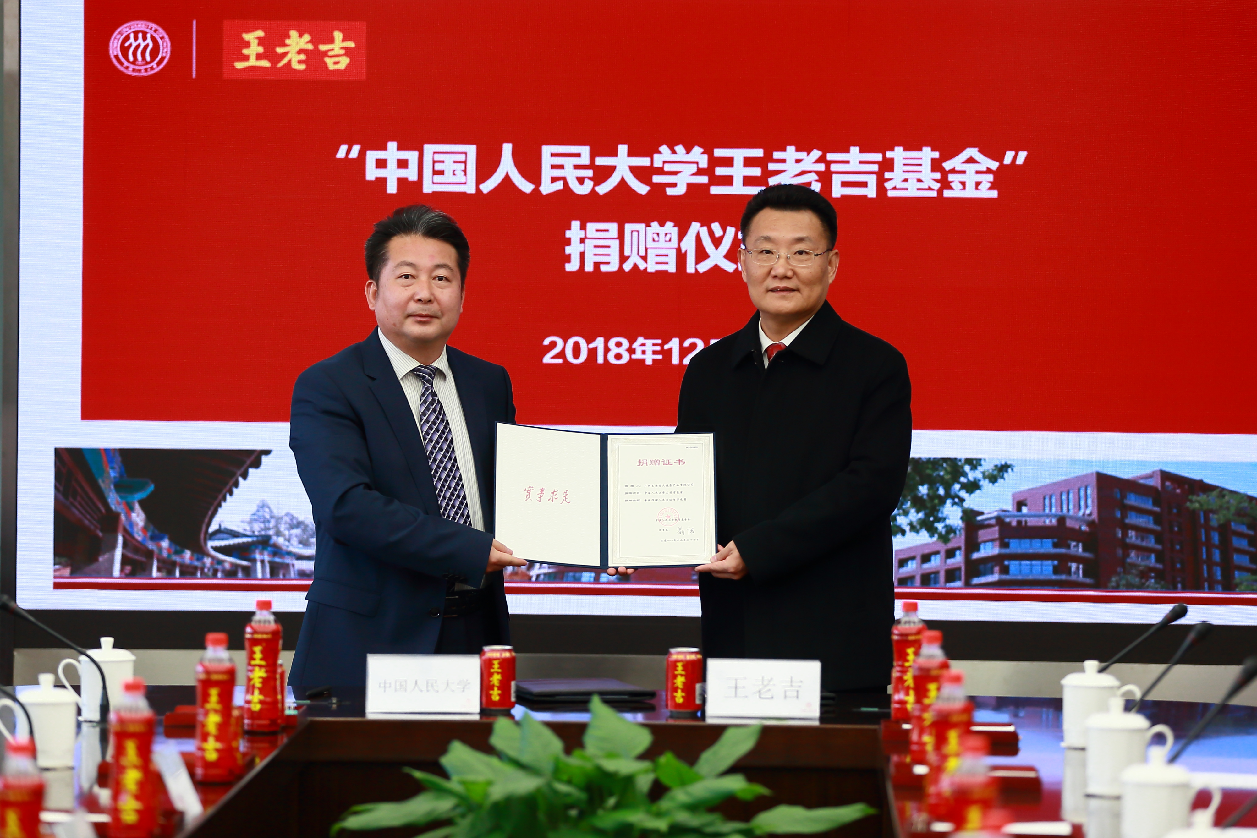 中国人民大学向广州王老吉大健康产业有限公司颁发捐赠证书