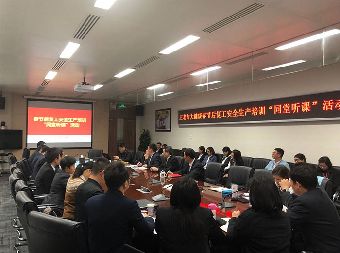 2019年2月18日大年正月十四,公司安全保卫部根据广药集团安委办工作部署,组织广州本部部门安全员及员工代表共计52人,开展节后的复工安全生产培训暨企业领导“同堂听课”活动,公司党委书记巫辉南、总经理翁少全等领导参与了同堂听课,公司纪委副书记、安全保卫部部长丁群生主持培训活动。