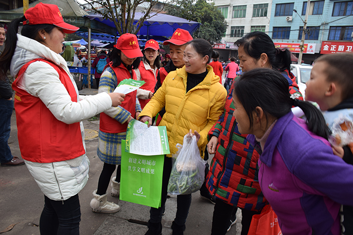 服务队在雅安市名山区永兴场镇街道发放宣传资料