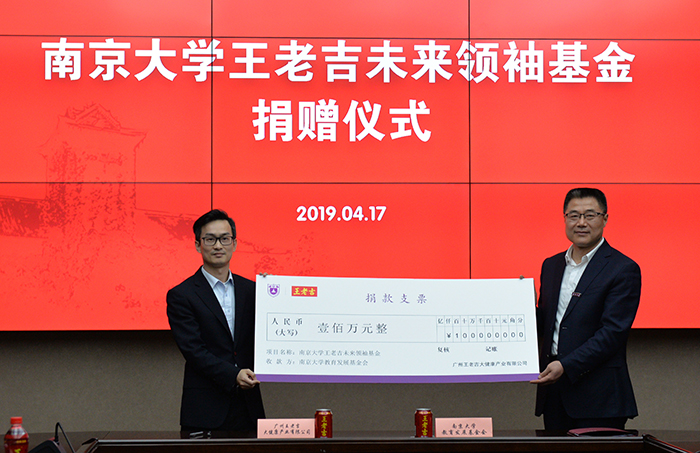 启动仪式上,王老吉向南京大学捐赠100万元,设立南京大学王老吉未来领袖基金,用于支持南京大学培养具备国际视野、领导力、创新力的综合型人才和校园文体活动开展。