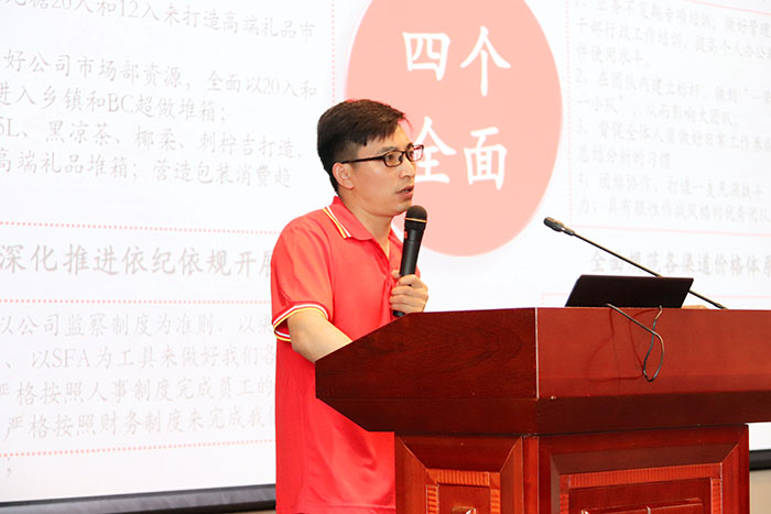 黔东办在所有员工的努力下,三年时间业绩翻了一倍,良好的业绩体现了办事处永不言败、积极进取的精神。办事处经理黎吉华也分享了办事处的优秀经验以及未来规划:在 团队建设方面,要求管理岗人员一带一小队,在团队内建立标杆,有责任心,树立“解决问题是职责”的职业操守,打造一支有责任心、有拼搏上进精神的狼性团队;在业绩达成方面,优胜劣汰经销商,全面打造礼品消费市场,学会在发展中解决问题,利用区域优势借势、造势。在未来规划方面,围绕四个全面开展工作,全面建成礼品消费市场,全面提供业务团队专业水平,全面深化推进依法依规开展工作,全面规范各渠道价格体系。最后,“一路黔行,做好带头人”,在黔东这片土地让王老吉遍地开花,全力打造贵州第四张名片。