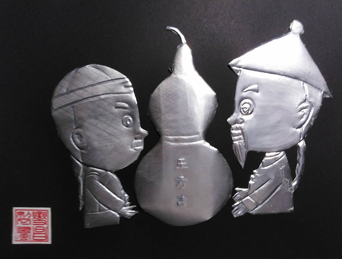 康龄轩慈善义工团队手工艺术爱好者用王老吉凉茶罐制作“林则徐赠葫芦”、“新大陆游记”手工艺品