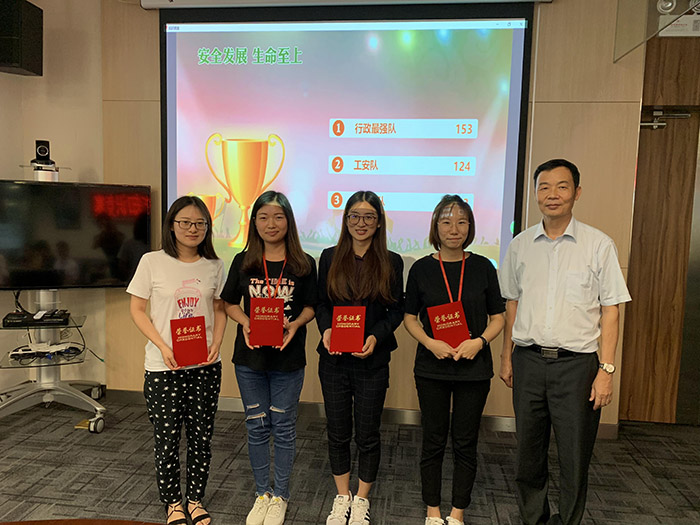 比赛最后环节,公司党委书记巫辉南、纪委书记米琪、纪委副书记兼安全保卫部部长丁群生分别向获奖代表队颁发荣誉证书。巫辉南书记肯定了此次竞赛活动成果,希望安保部在以后的工作中,采取更多生动活泼的方式,开展安全生产各类活动。同时,巫书记强调了安全生产工作的重要性,要求全体员工在紧张工作的同时,时刻遵守安全规章制度,紧绷防范事故的弦,一刻都不能放松。针对我司营销人员多,基本都是户外作业,不可预测的安全因素随时存在,特别是交通安全,巫书记要求安全保卫部创新宣传教育模式,充分发挥内部员工的宣传作用,制作成视频,在办事处广泛宣传,提高员工的安全意识。