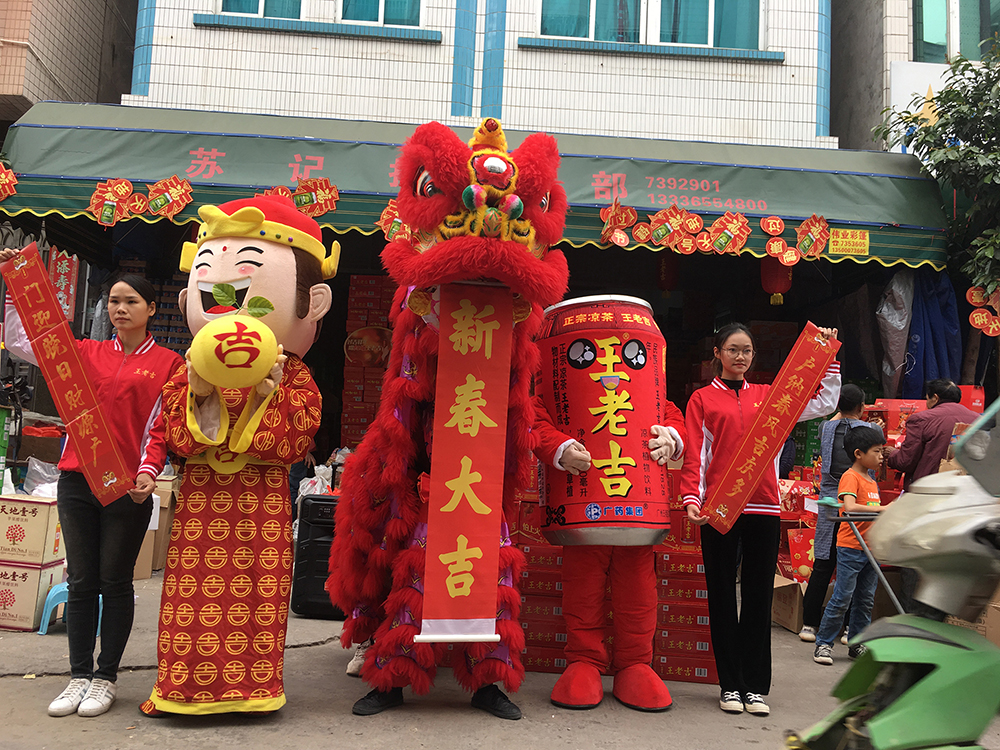 华南作为醒狮表演的南派发源地,醒狮文化源远流长,氛围浓郁,是新年必不可少的传统项目。而今年,有一帮人在这一传统项目中加了一点“吉”,有新意,更吉祥。那就是王老吉在全国各地多个重要批发街、商圈旺点巡回举行的“千狮贺岁,鼠年大吉”活动,“吉祥爷”携“雄狮”惊喜造访,为王老吉的忠实客户和吉粉们送上吉祥祝福。