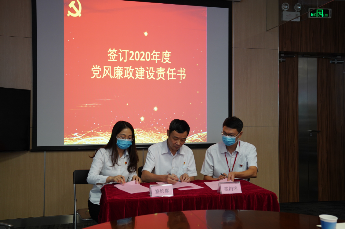 会议最后举行了2020年度党风廉政建设责任书签订仪式,巫辉南同志代表公司党委与班子成员代表、党支部书记代表签订了党风廉政建设责任书。