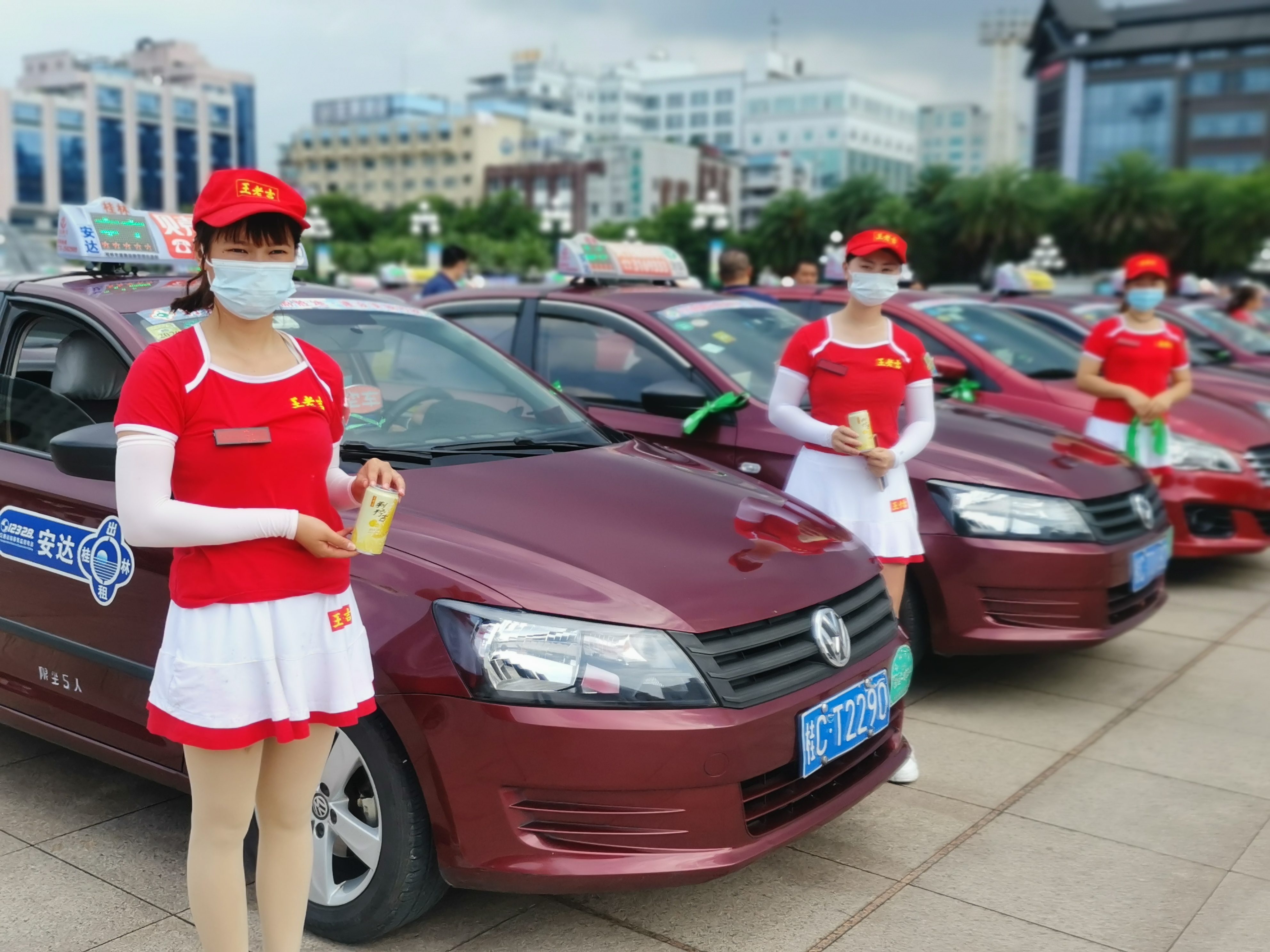 系有绿色丝带的桂林爱心专车随时待命
