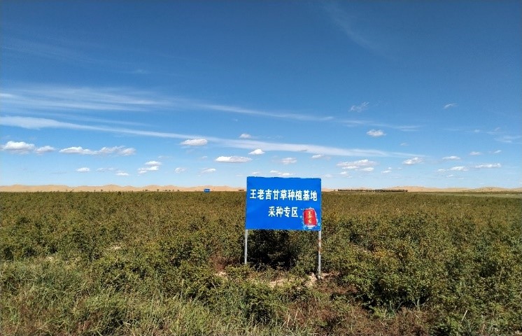 王老吉凉茶甘草规范化种植基地是由广药采芝林、王老吉大健康,安徽兴源顺公司三方合作共建,是王老吉红罐凉茶在全国道地产区建成的第9个原料规范化种植基地,基地位于内蒙古杭锦旗巴音乌素嘎查。早在隋唐时期,巴音乌素的西北沟一带就有“甘草城”的美称,该地区生产的“梁外甘草”冠绝中外,是甘草的典型代表,具有皮色粉红、粉多筋少、根头肥实、切面光滑等特点。现如今杭锦旗也是甘草的道地产区,“杭锦旗甘草”成为地理标志证明商标,是驰誉中外的甘草之乡。王老吉甘草种植基地设有野生甘草采种专区,采取移栽和直播两种培育方式,采用仿野生化栽培管理,不添加任何农化产品,保持了甘草的野生自然风貌。