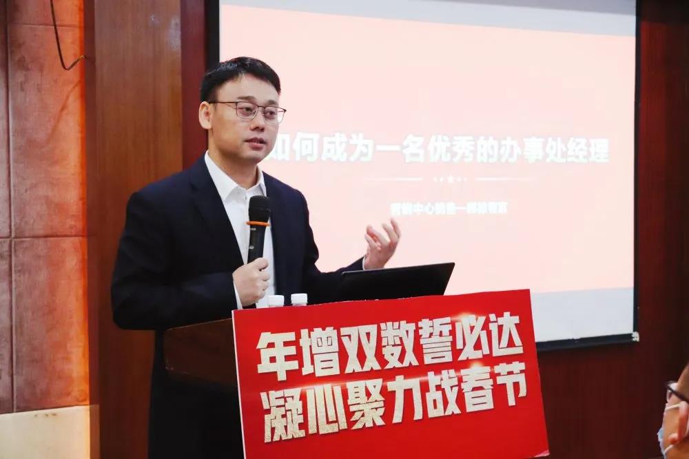 每一场培训的顺利开展都少不了公司高层领导的支持。公司董事长徐文流亲临培训现场及销售一部春节动员大会,并作了重要讲话。在会上,公司董事长徐文流对大家未来的工作提出了五点要求,为2021年的营销工作指明了方向。