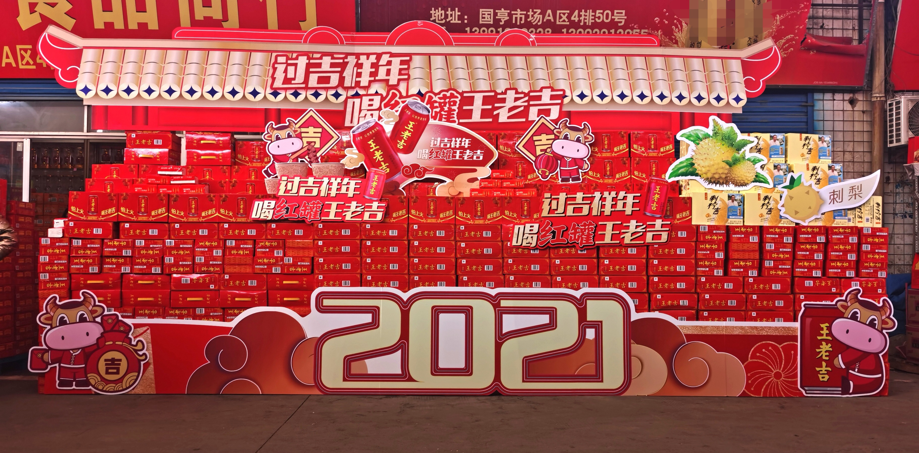 大街小巷的商超卖场、年货大街、批发市场、码头油站、餐饮宴席……皆是吹响“吉”结号的战场;造型各异的气势堆箱、红遍乡镇的氛围布置、精致创新的地标造型等,是我们出击的有力武器。