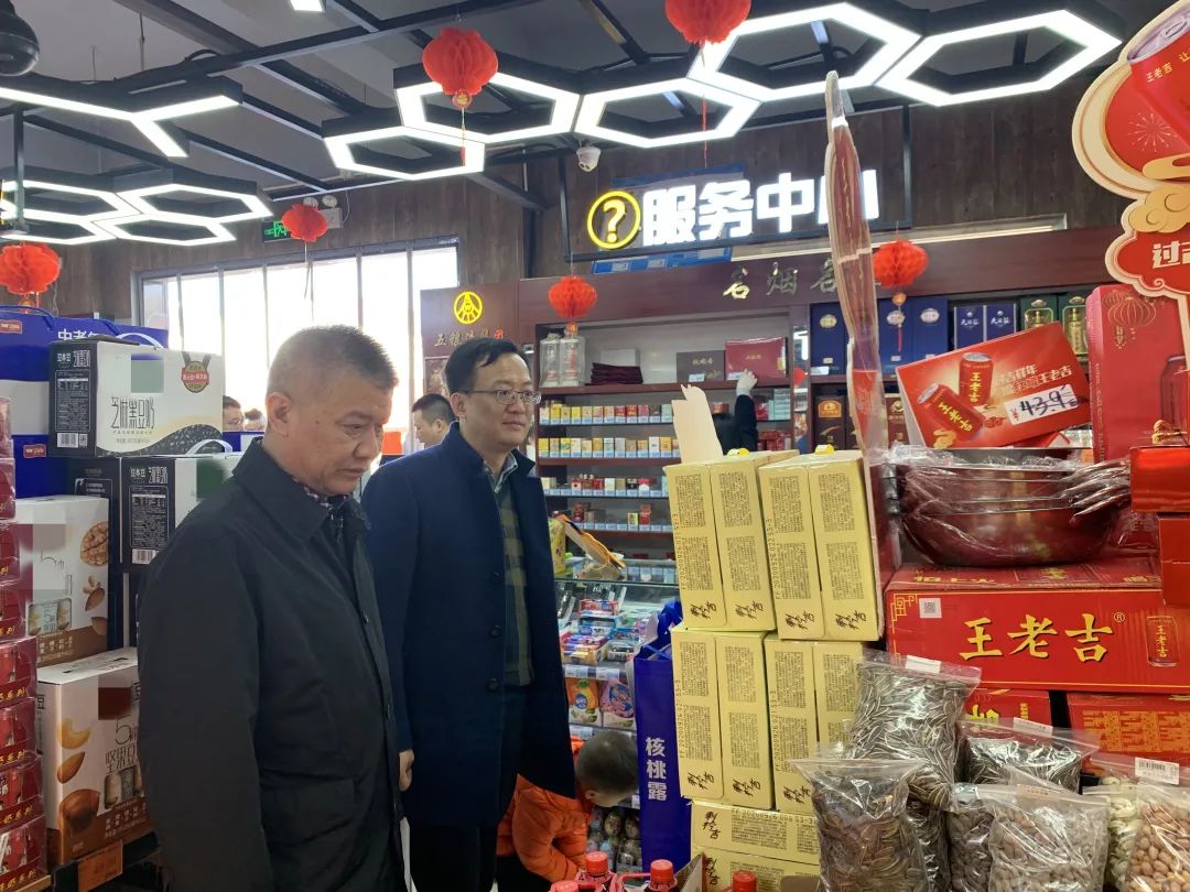 徐文流董事长一行领导陆续走访了年货大街、终端商户、小店等,详细了解了春节期间的销售工作,并与在岗工作的同事们闲聊家常,让大家也感受到浓浓的年味与温暖的祝福;总结过去一年的发展成果与大家深入交流,勉励大家要有信心,把握节庆消费机遇,推进各项销售工作。